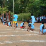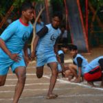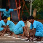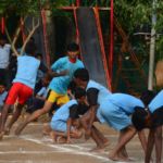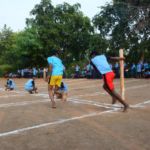 Kho kho ist ein beliebtes, sehr verbreitetes Fang-Spiel in Indien. Auch unsere Schüler spielen es und waren sogar schon bei Landesmeisterschaften erfolgreich. Es treten zwei Teams mit je zwölf Spielern gegeneinander an, von denen jeweils neun gleichzeitig auf dem Feld sind. Ziel ist es, sich nicht von Spielern der gegnerischen Mannschaft abschlagen zu lassen. Ein Team hockt dabei in der Mitte des Spielfeldes an einer Linie in jeweils abwechselnder Richtung. Die Läufer (drei gleichzeitig) sind im Feld und das Team, welches die kürzeste Zeit braucht, alle gegnerischen Spieler abzuschlagen, gewinnt. (Mehr bei Wikipedia.)